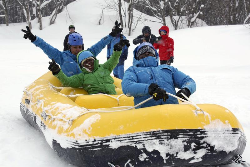 "That was my first time out on the snow. I had a lot of fun, even without skiing," said Melissa Crowley, a South African studying at Akita University, after riding on an inflatable raft pulled by a snowmobile.