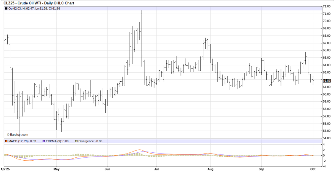 Fundamentally, there are several analytical and brokerage firms that are forecasting a global crude oil glut in the coming months. One firm is forecasting crude oil prices to drop into the $50-a-barrel range in the coming quarters on expectations for “punishing oversupply” as output expands. Macquarie Group analysts remain “fundamentally bearish on the energy complex” due to crude-supply growth from OPEC-plus and drillers outside the group. Last month, the International Energy Agency projected that world output would exceed consumption by an average of 3.33 million barrels a day in 2026. That would be a historic overhang in annual terms.