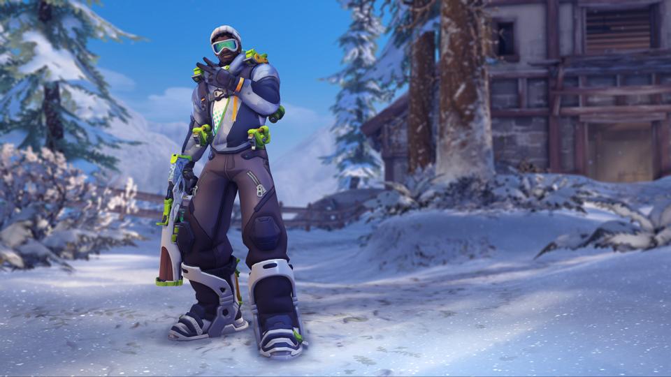Baptiste is exactly the kind of hero I’d expect to see hanging out on the slopes and having a good time with his friends. He’s not the only Overwatch character to get a snowboarding themed-skin: Andes Lúcio has snowboarding googles too.