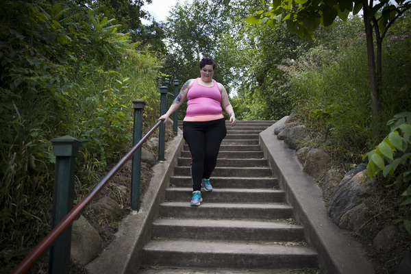 One afternoon last week, she walked a few blocks from her home to Minnehaha Falls for a midday workout. She was dressed in a sports tank top and leggings with the words "goal digger" written down one leg. Sweat beads formed on Steinke's forehead as she jogged up the stairs in the park, paused to look at the rushing water, and then climbed more stairs _ her legs swallowing two steps at a time.