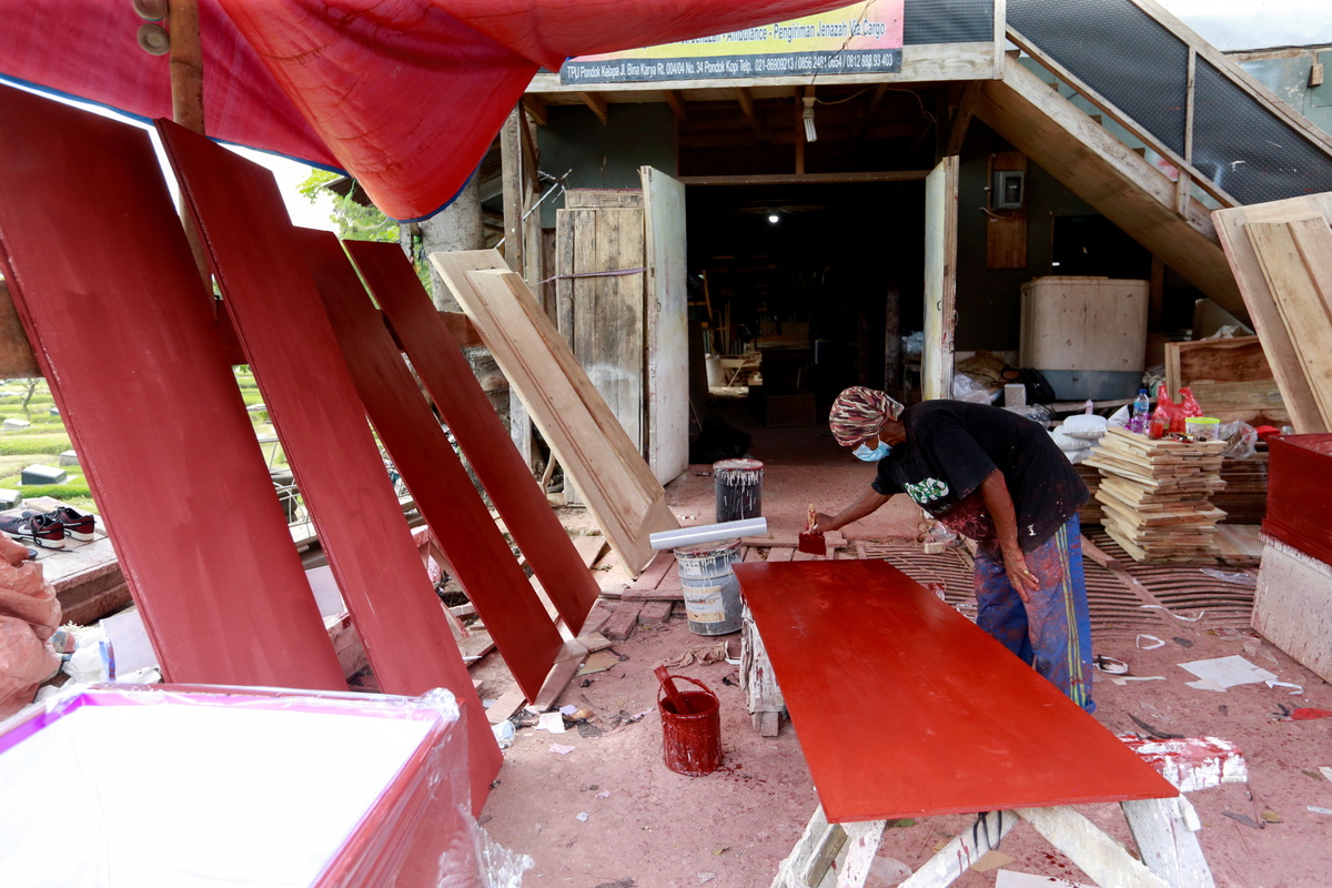 At a workshop located in a Jakarta cemetery, coffin maker Olaskar Purba and his team are hard at work.