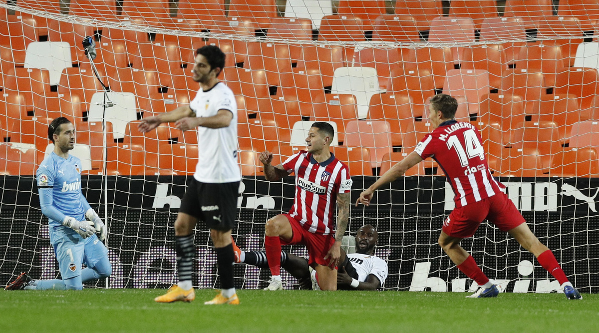 The visitors had carved out many chances with no reward until Yannick Carrasco cut into the box and his cross bounced off the flailing leg of Valencia defender Toni Lato and trickled into the net in the 79th minute.