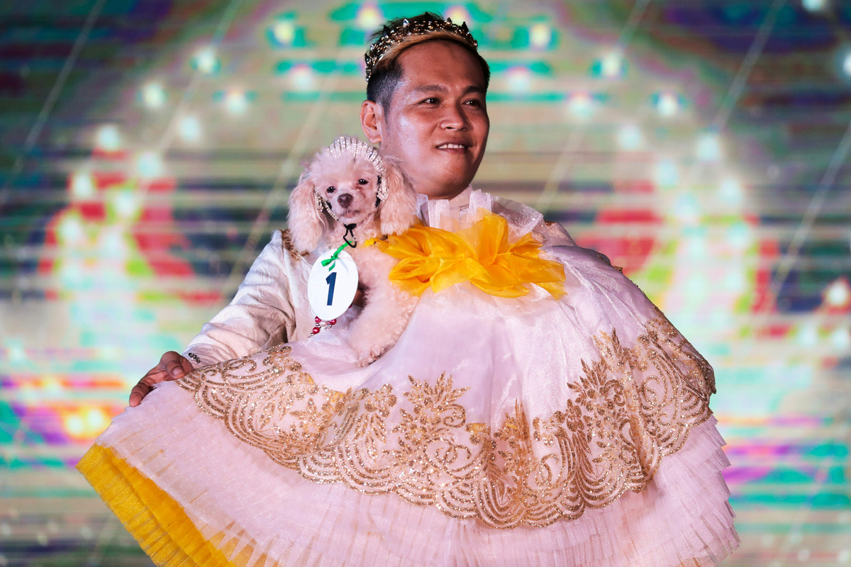 "They are like humans to us, so we need to have them blessed and make sure they do not get sick, and continue being with me," said Filipino dog owner Ram de Castro, while carrying his pet dressed in Miss Universe-inspired red evening gown.