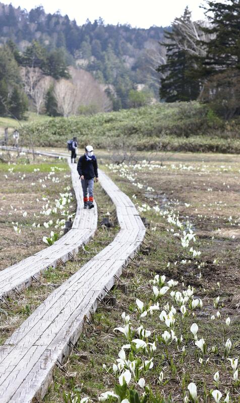 Hikers visited to Oze National Park on Saturday, when the 37,200-hectare tract straddling the four prefectures of Fukushima, Gunma, Tochigi and Niigata opened for the summer season.