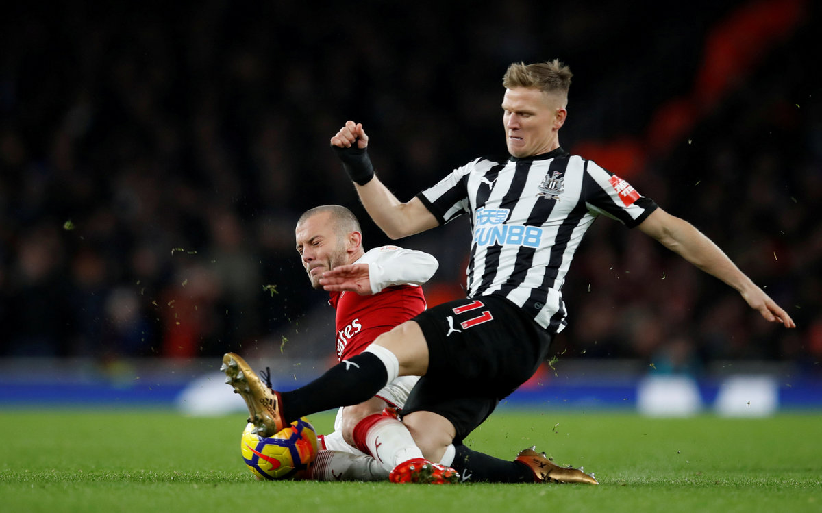 Soccer Football - Premier League - Arsenal vs Newcastle United - Emirates Stadium, London, Britain - December 16, 2017 Arsenal's Jack Wilshere in action with Newcastle United's Matt Ritchie REUTERS/Eddie Keogh