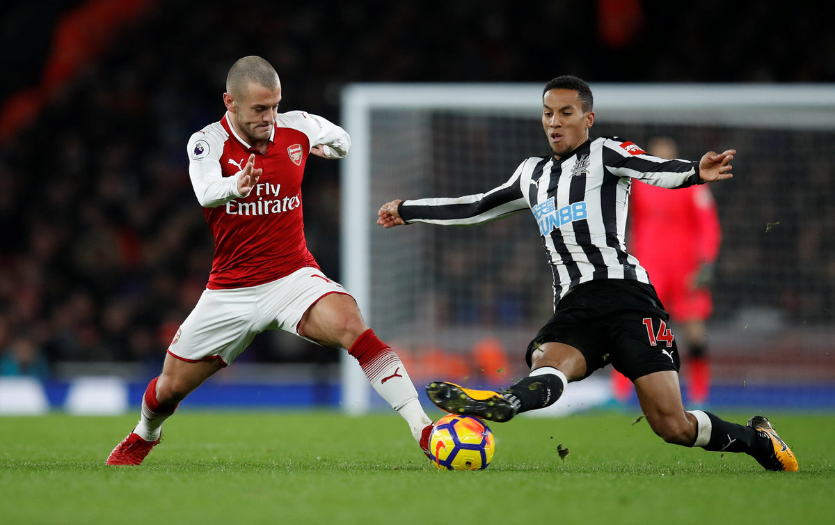 Soccer Football - Premier League - Arsenal vs Newcastle United - Emirates Stadium, London, Britain - December 16, 2017 Arsenal's Jack Wilshere in action with Newcastle United's Isaac Hayden REUTERS/Eddie Keogh