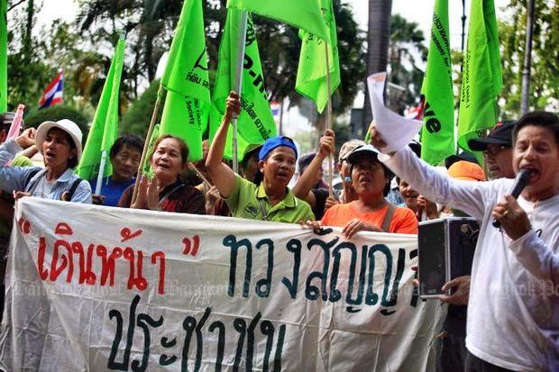 "Everything we have to do to survive on our land must be run by the governor first. In reality, we can't live like that, that's why we came here, to demand a change of policy," Mr Jumnong said during a protest depicting local people being evicted from their land and mocking government incompetence and injustice against grassroots people. P-Move will keep pressuring the cabinet for the approval of land protection rights tomorrow. "If this is still rejected, the network will meet to plan a stronger response."