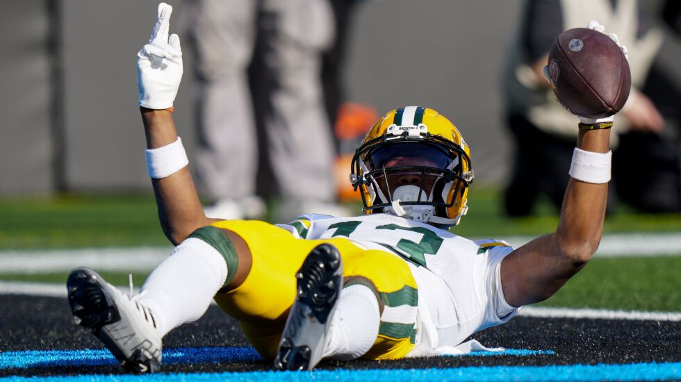 Love, who finished 17 of 28 for 219 yards, followed with a 20-yard completion to rookie tight end Tucker Kraft to reach the Carolina 13, setting up Carlson’s kick.