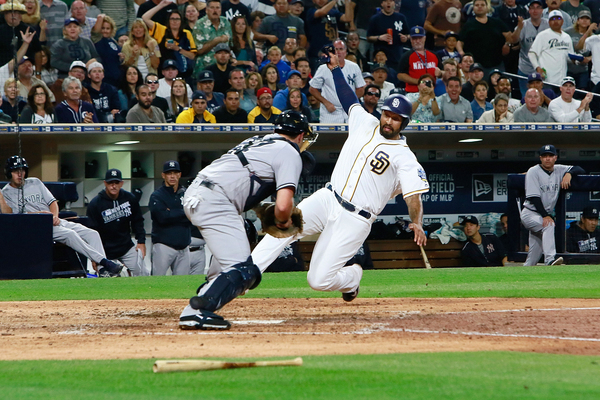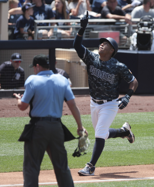 Strengthening his case for an All-Star invite, the Padres' first baseman homered on the first day of July, singled and swiped his 12th base as the Padres snapped a three-game skid with a 7-6 win over the Yankees on Friday night in front of a sellout crowd of 41,321 at Petco Park.