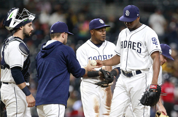 Padres relievers Ryan Buchter, Brad Hand and Brandon Maurer each threw a perfect inning of relief, sealing the victory.
