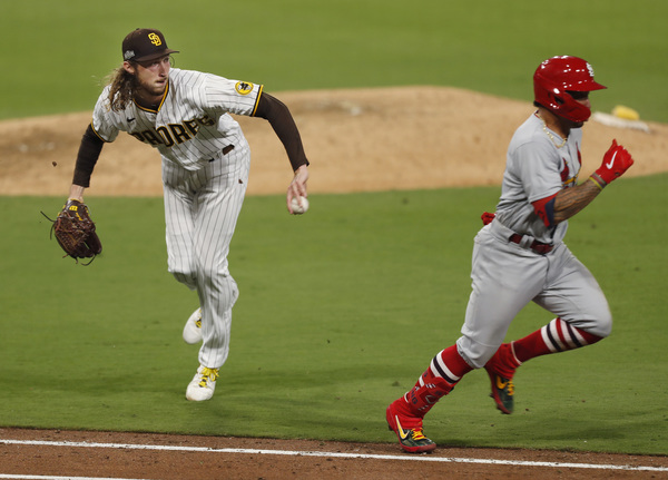 As it was Wednesday, a single by La Jolla Country Day alumnus Tommy Edman was the Cardinals' first hit Thursday. He scored on Yadier Molina's single. Matt Carpenter led off the second inning with a double and scored on Harrison Bader's one-out single. Kolten Wong followed with a home run right field, on Davies' 48th pitch of the game.