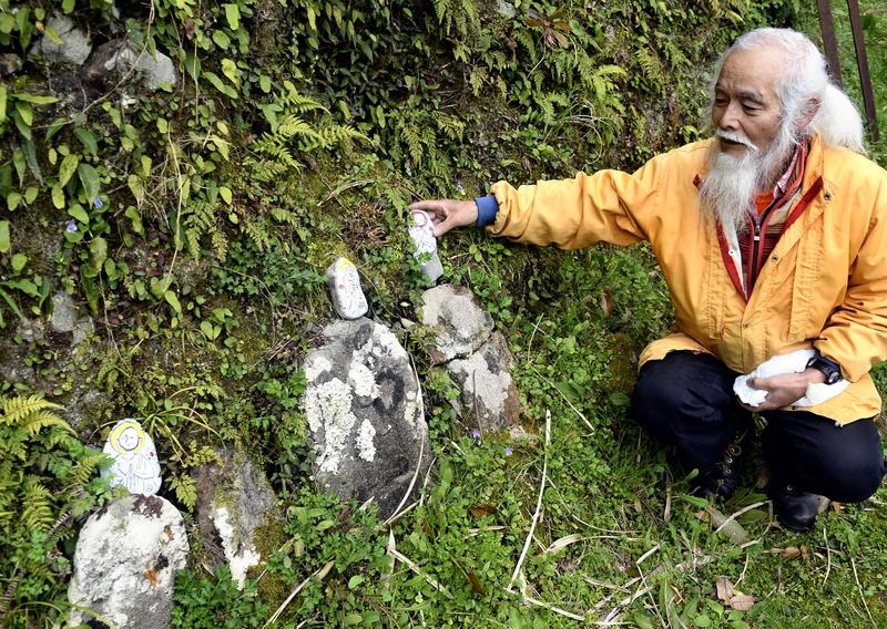 Kunimi carried stone kannon in his backpack and visited sites, placing them next to stone Buddha statues, stone pagodas and at the bottom of large trees. He said he did so hoping they will watch over people walking on the path.