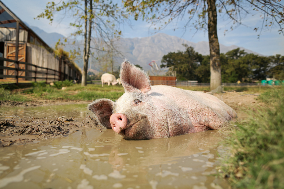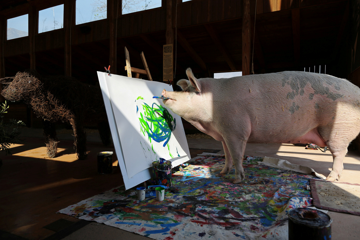 The sow was rescued from an abattoir as a piglet and brought to an animal sanctuary in Franschhoek, in South Africa's Western Cape region in 2016, where her new owners noticed her love of color and paint brushes.