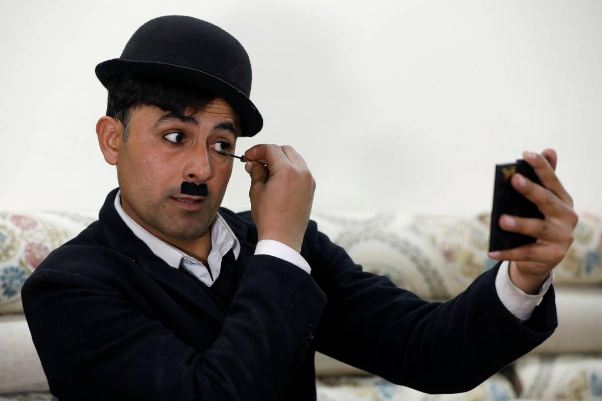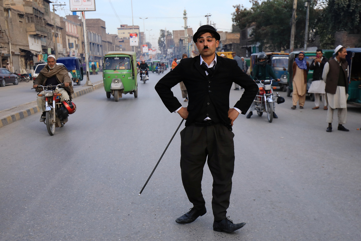 Usman Khan, 28, used to sell children's toys from a roadside stand but during the COVID-19 pandemic has transformed himself into Charlie Chaplin, a century after the silent comedian was propelled to global fame with his slapstick antics.