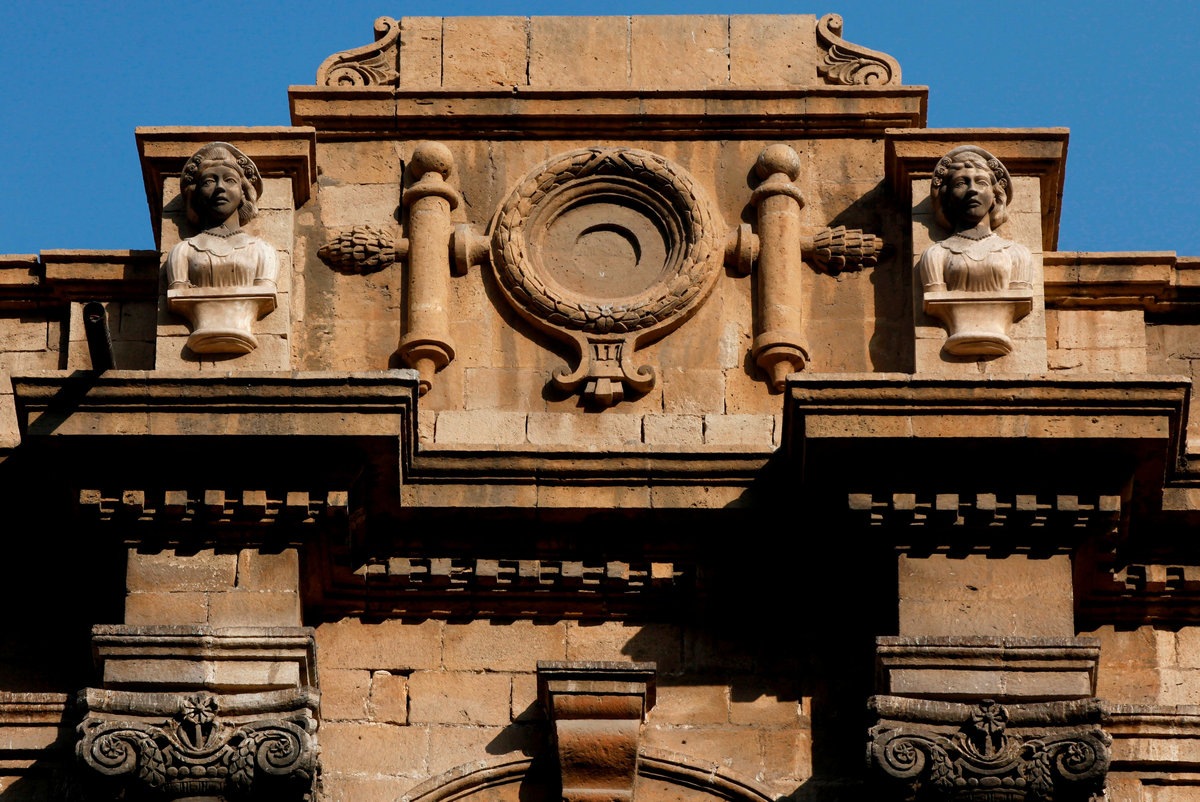 Two female busts are seen on a building, built in the British colonial period, in Karachi, Pakistan, January 31, 2018. REUTERS/Akhtar Soomro