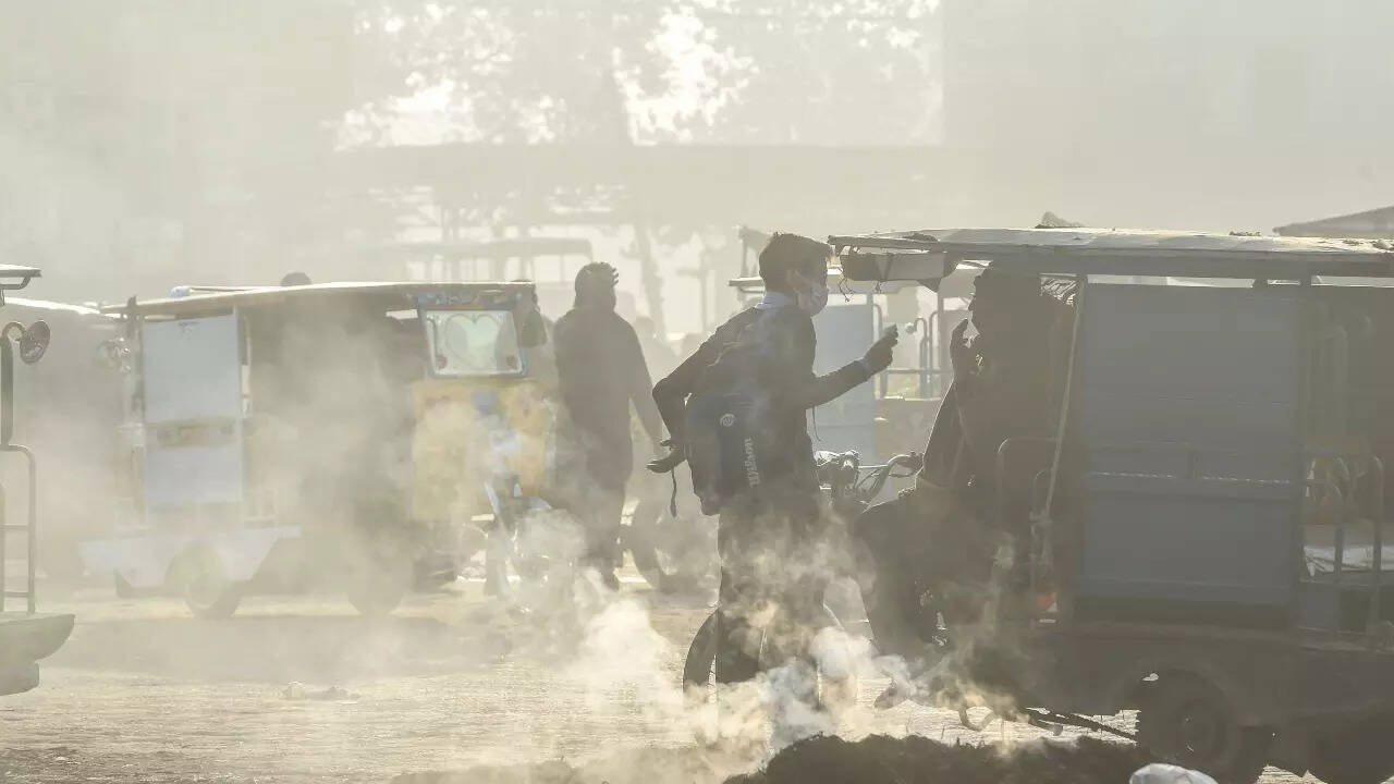 Auto-rickshaw drivers wait for passengers on a street amid smoggy conditions in Lahore. (AFP photo)