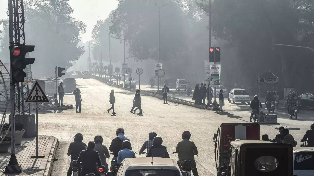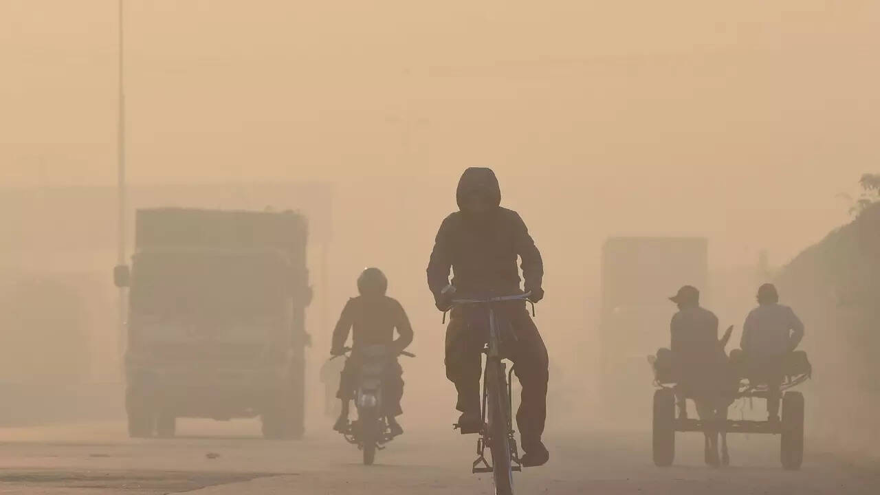 Commuters make their way along a road amid smoggy conditions in Lahore. (AFP photo)