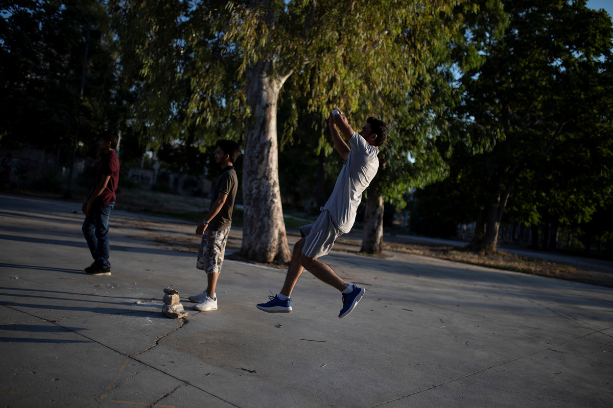 In Athens, where most migrants live, they resort to playing informally without proper gear.