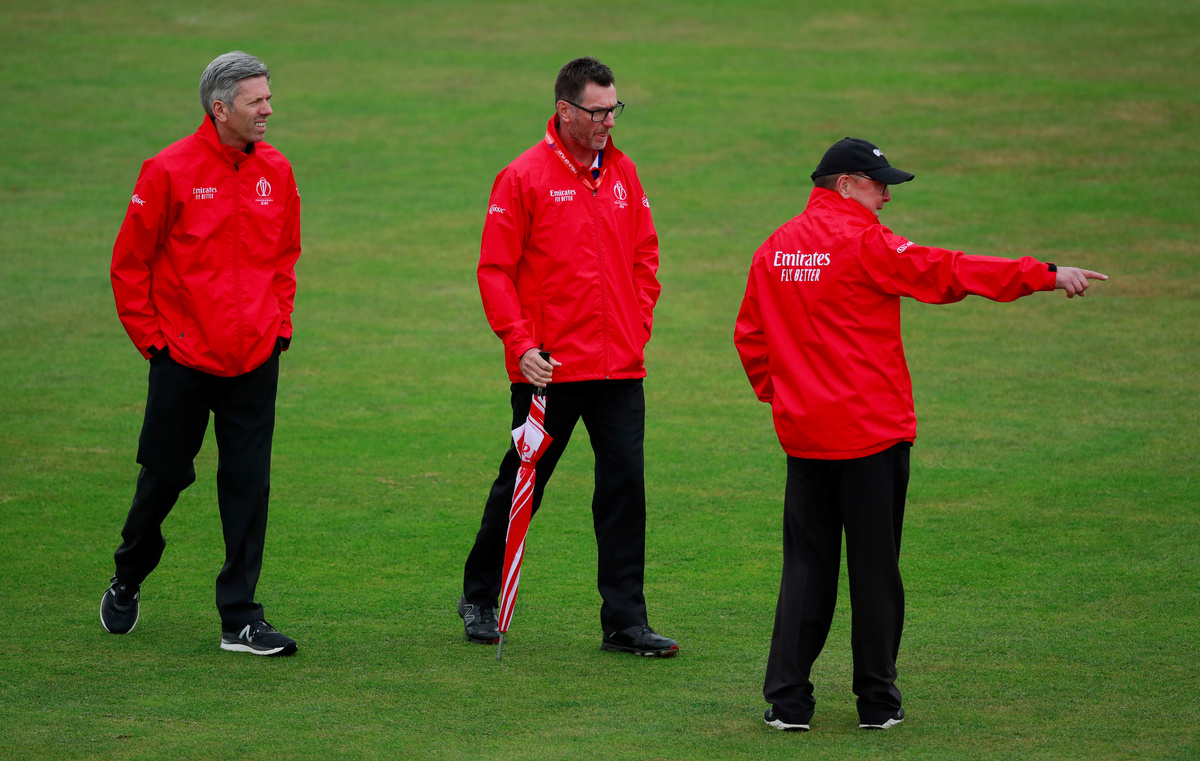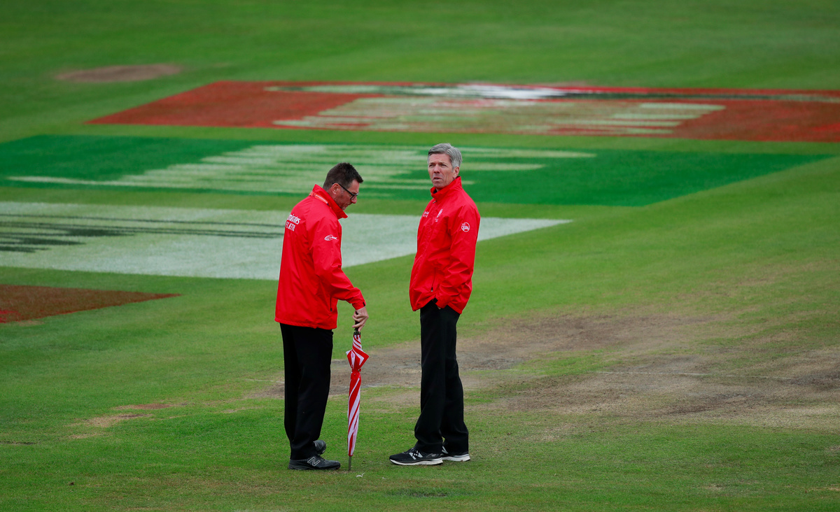Cricket - ICC Cricket World Cup - Pakistan v Sri Lanka - Bristol County Ground, Bristol, Britain - June 7, 2019 Umpires inspect the pitch during a rain delay Action Images via Reuters/Andrew Couldridge