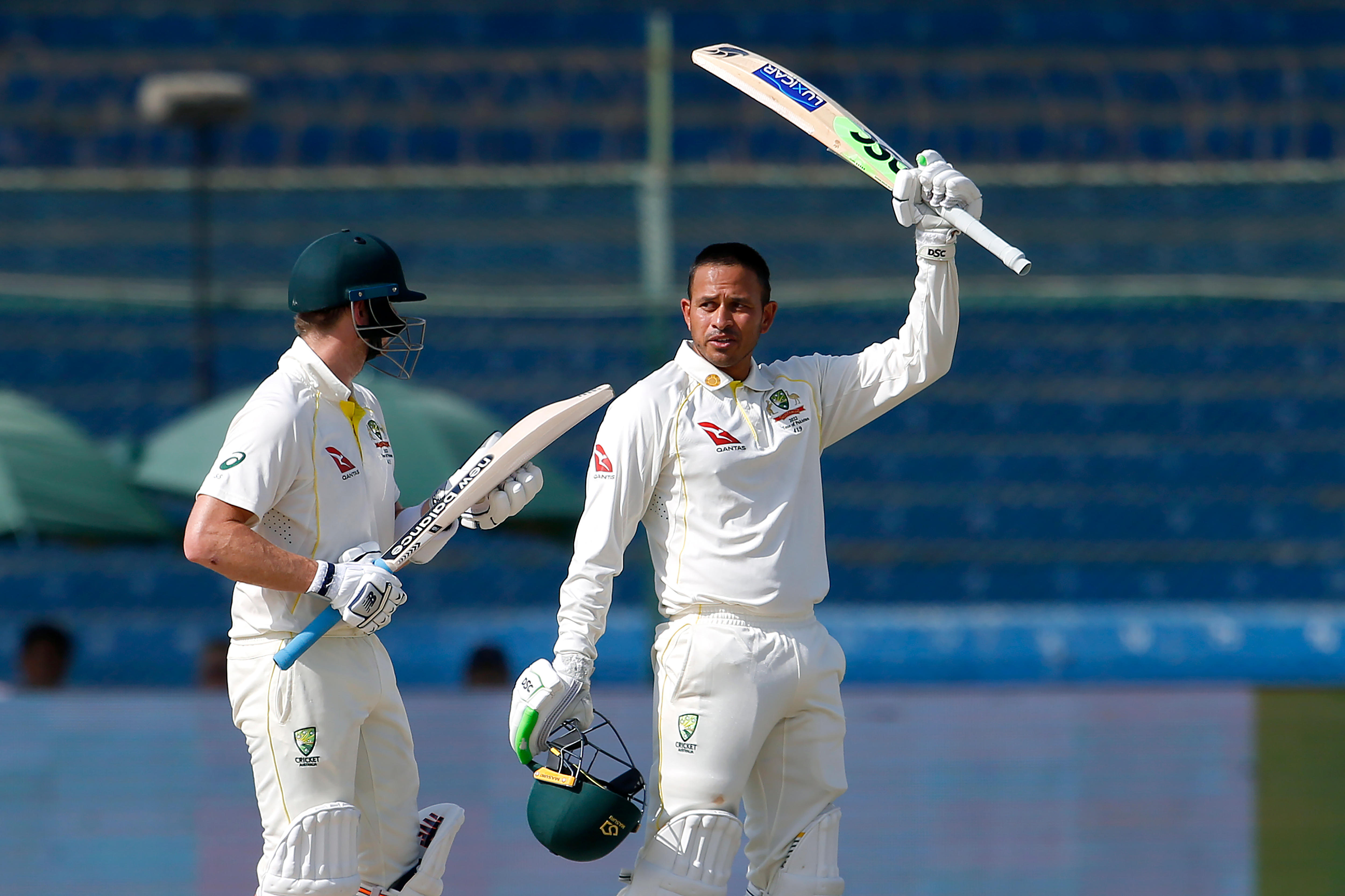 A century from Pakistan-born opening batter Usman Khawaja led a strong Australian batting performance on the opening day of the second Test in Karachi.