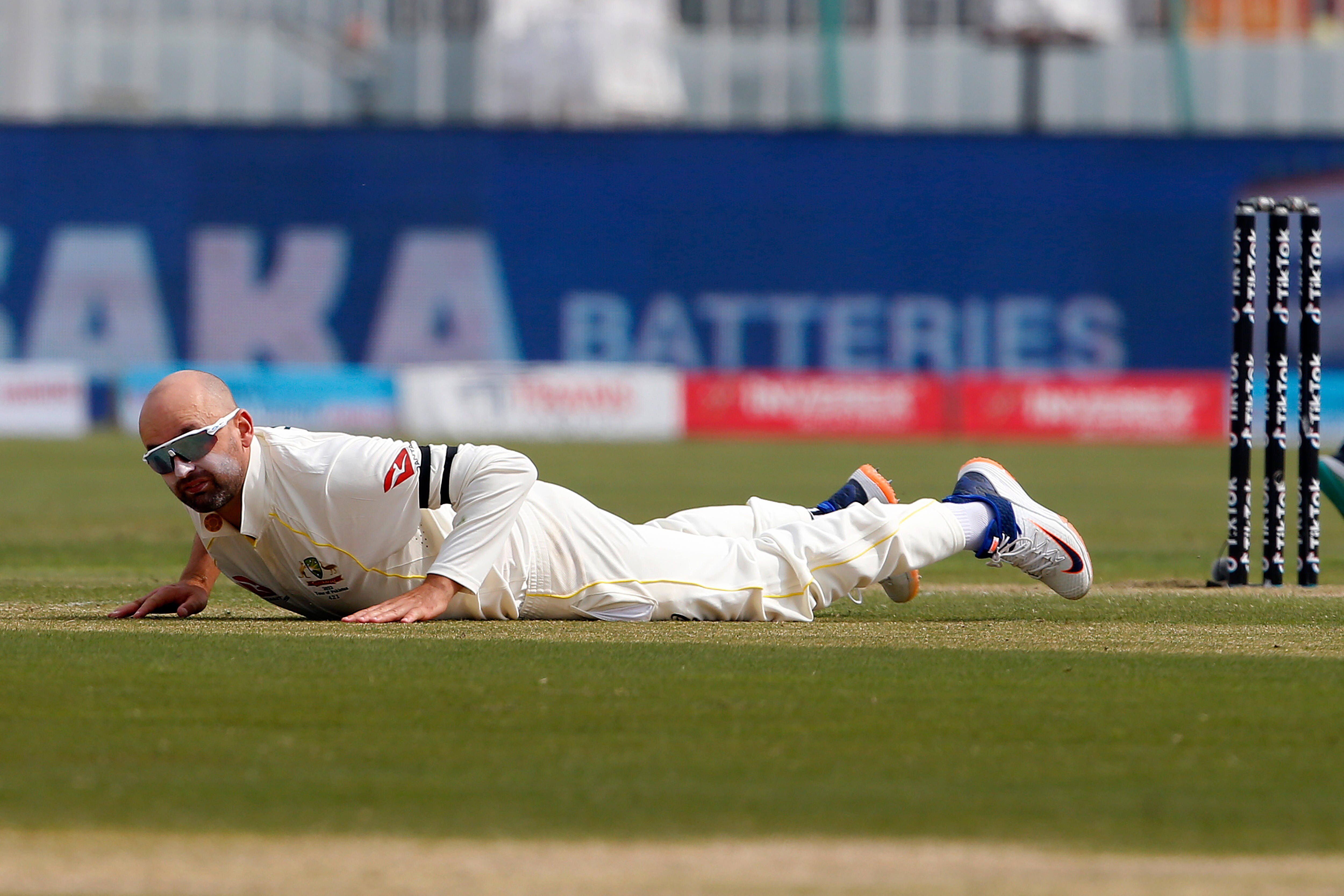 Marnus Labuschagne completed a sharp direct hit run out to remove Babar Azam 36, before Azhar's fine knock ended while attempting to switch hit Labuschagne's leg spin over the in field.