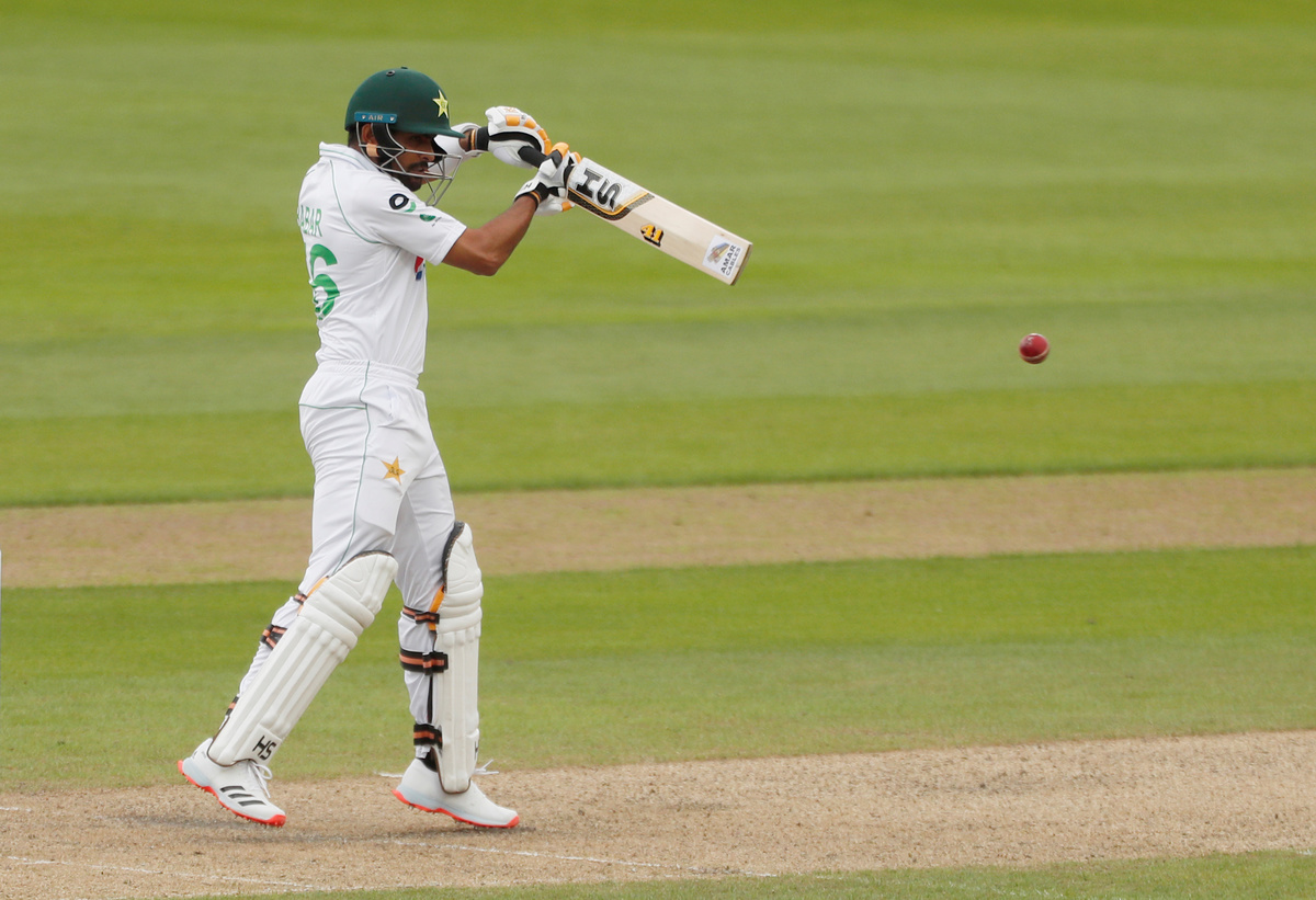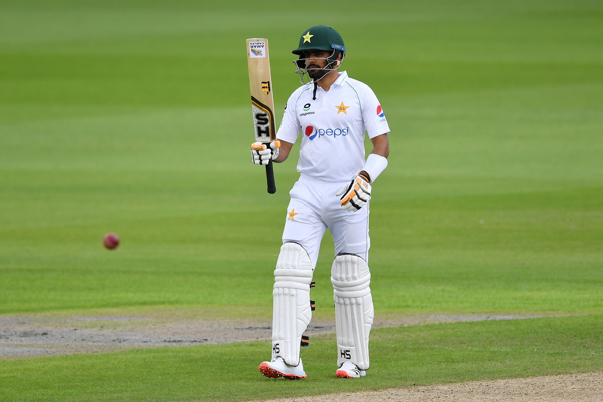 Babar Azam struck a fluent unbeaten half-century as Pakistan closed a rain-shorted first day of the first test against England on 139 for two at a gloomy and wet Old Trafford on Wednesday.