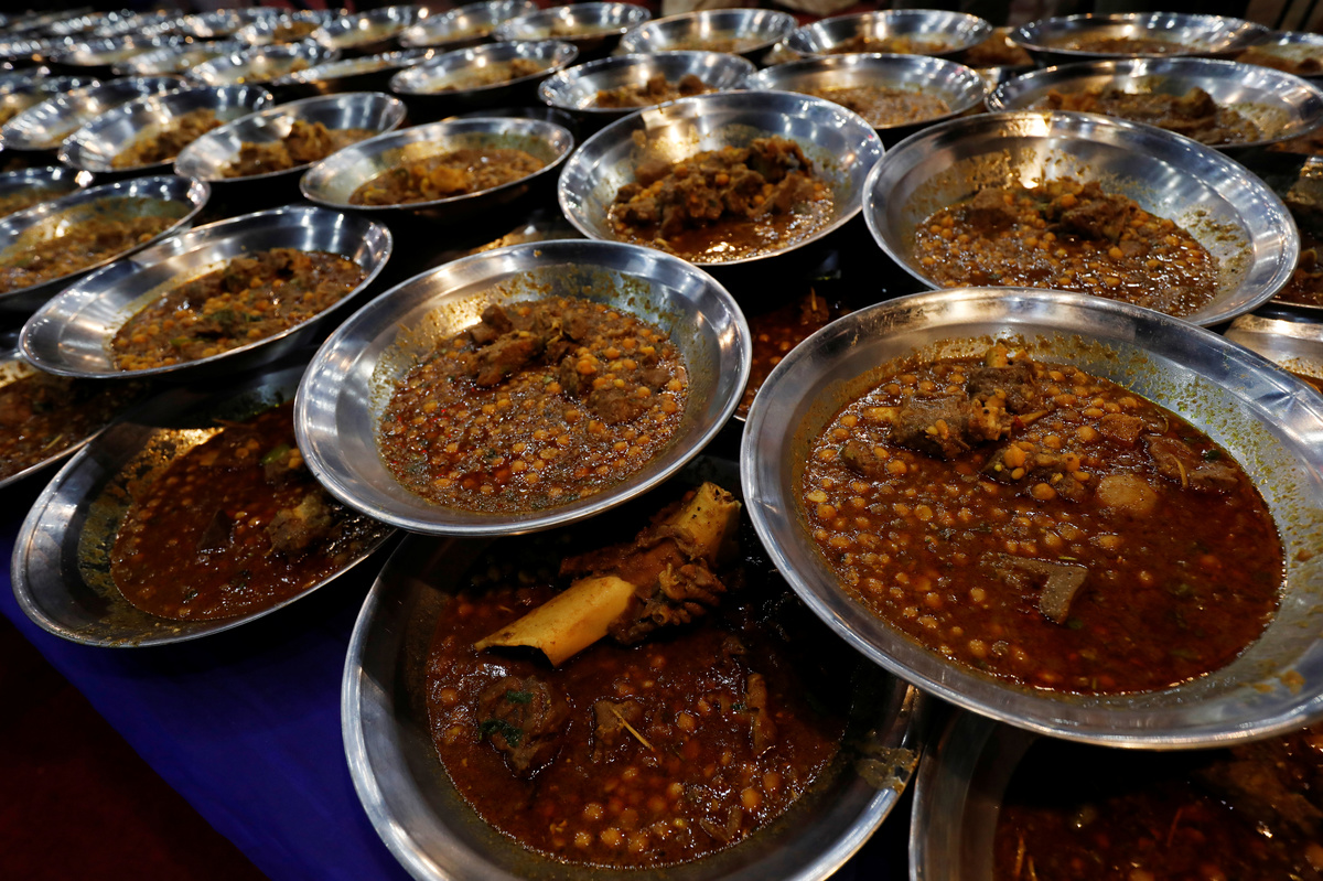 Volunteers stewed the red meat in cauldrons and served it in a chickpea curry to more than 500 residents before dawn broke on Tuesday, when Pakistani Muslims began their month-long Ramadan fast.