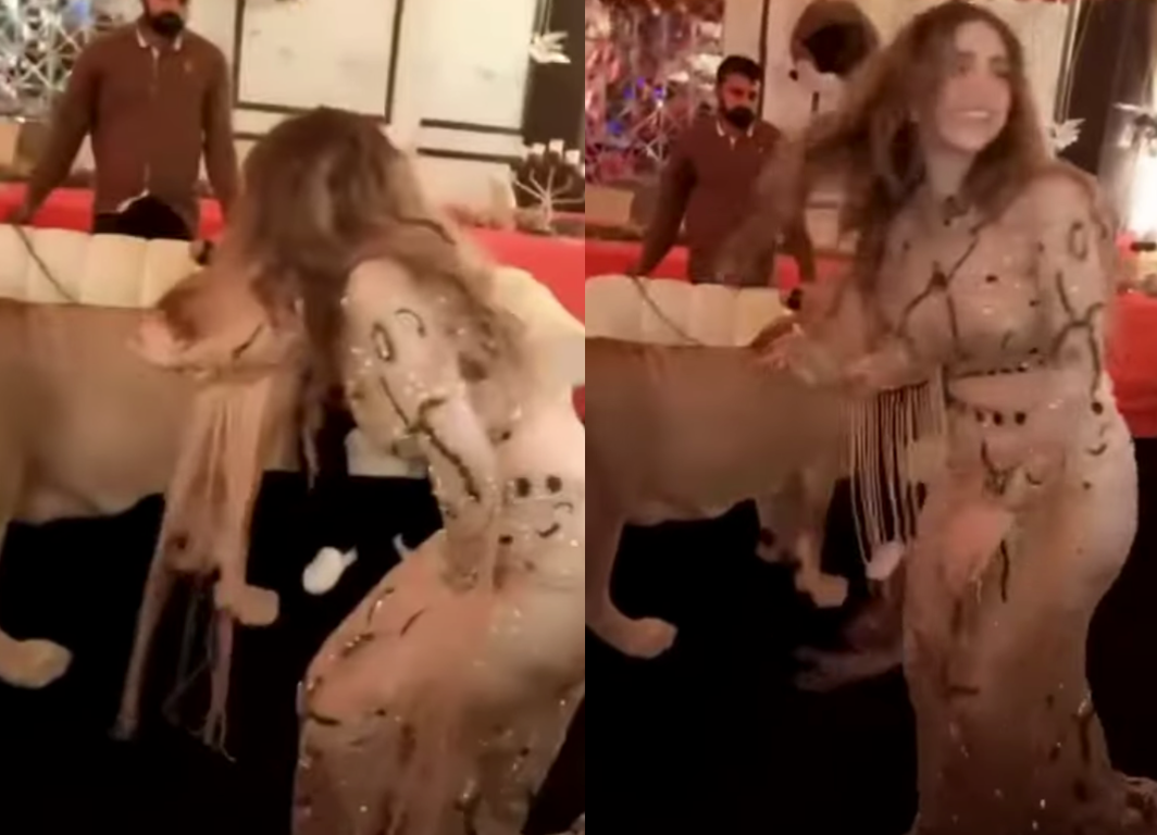 An influencer in Pakistan has come under fire after footage emerged from a party she reportedly hosted where a lion can be seen chained up and being used as an entertainment prop.