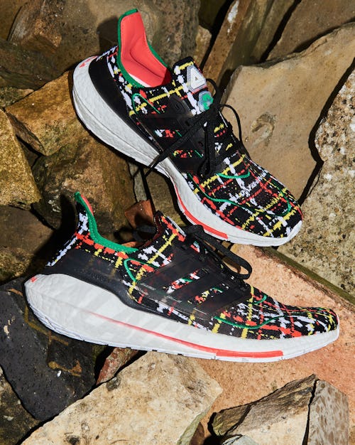 Joining the kicks is a small assortment of running accessories in black and white consisting of a five-panel hat and socks. Both are made using Adidas’ Primegreen fabric featuring zero virgin polyester, with a composition of 68 percent and 97 percent, respectively.