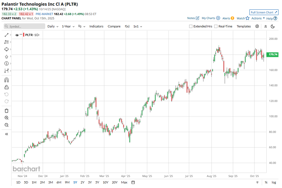 The stock also set a lofty all-time high of $190 on Aug. 11, putting the current price just a modest distance below that peak, even as volatility remains a constant companion. The magnitude of PLTR’s run this year signals strong conviction, but its proximity to record highs also means any missteps or sentiment shifts could reverberate quickly.