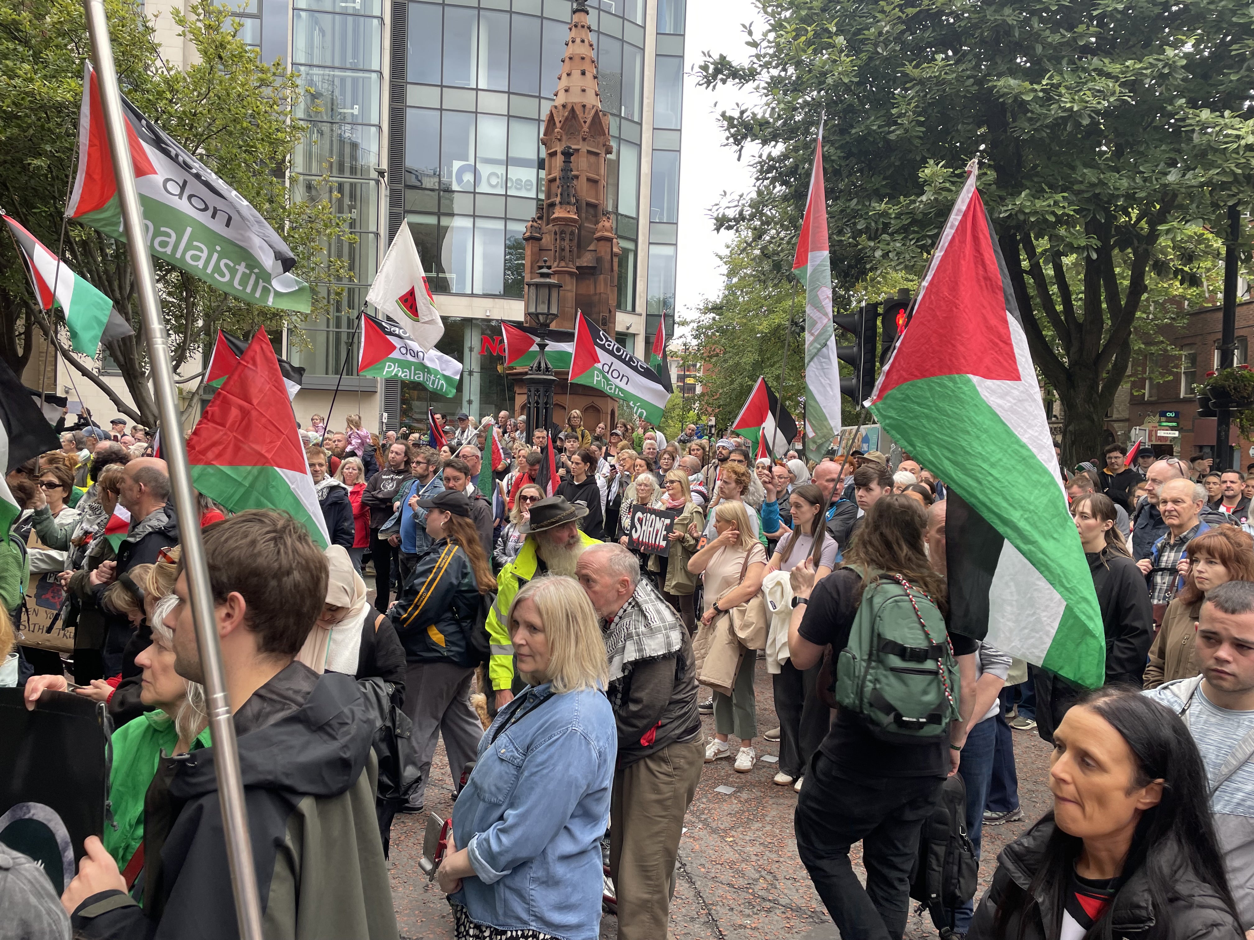 A few protesters were carrying Palestinian flags but only a couple carried placards.