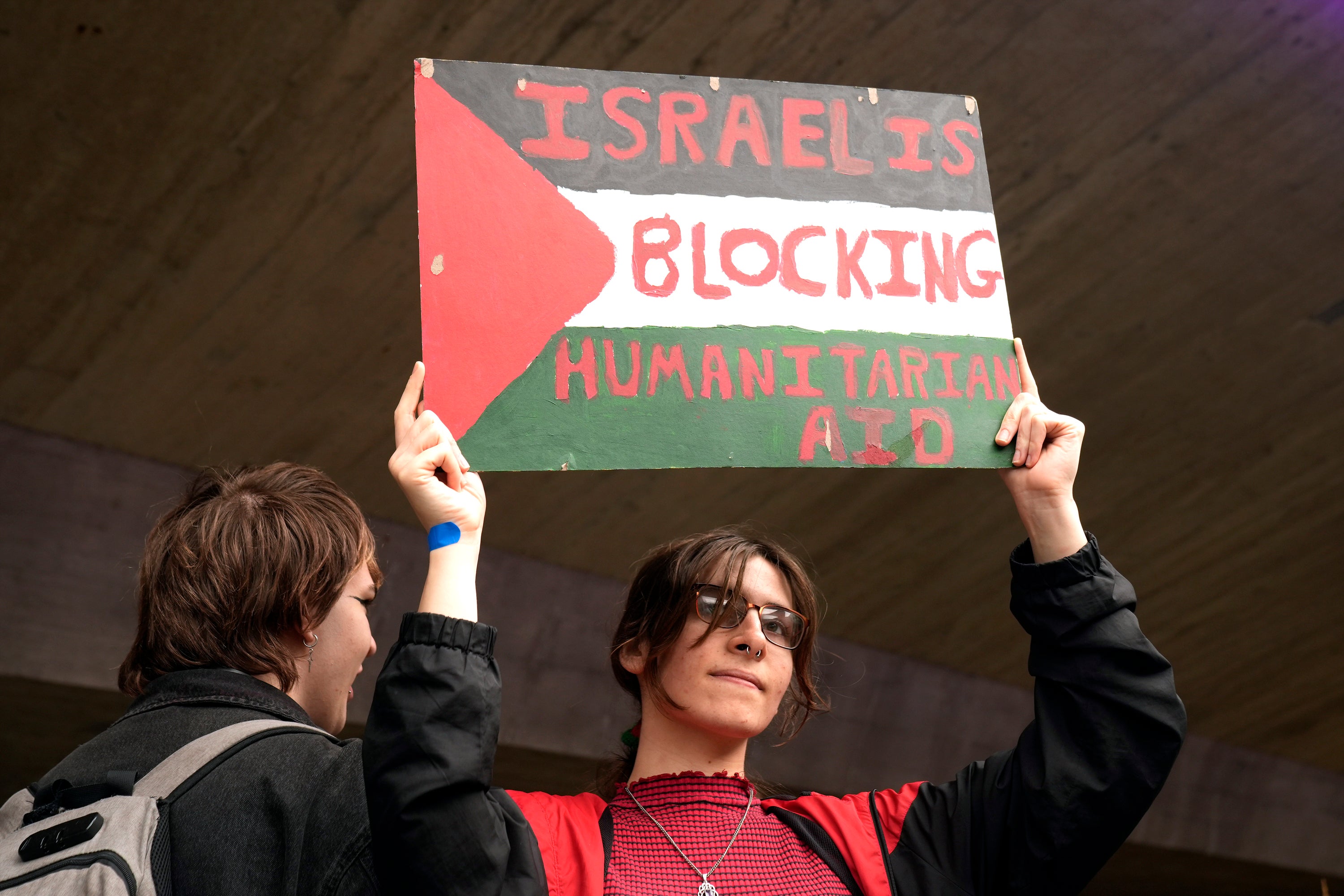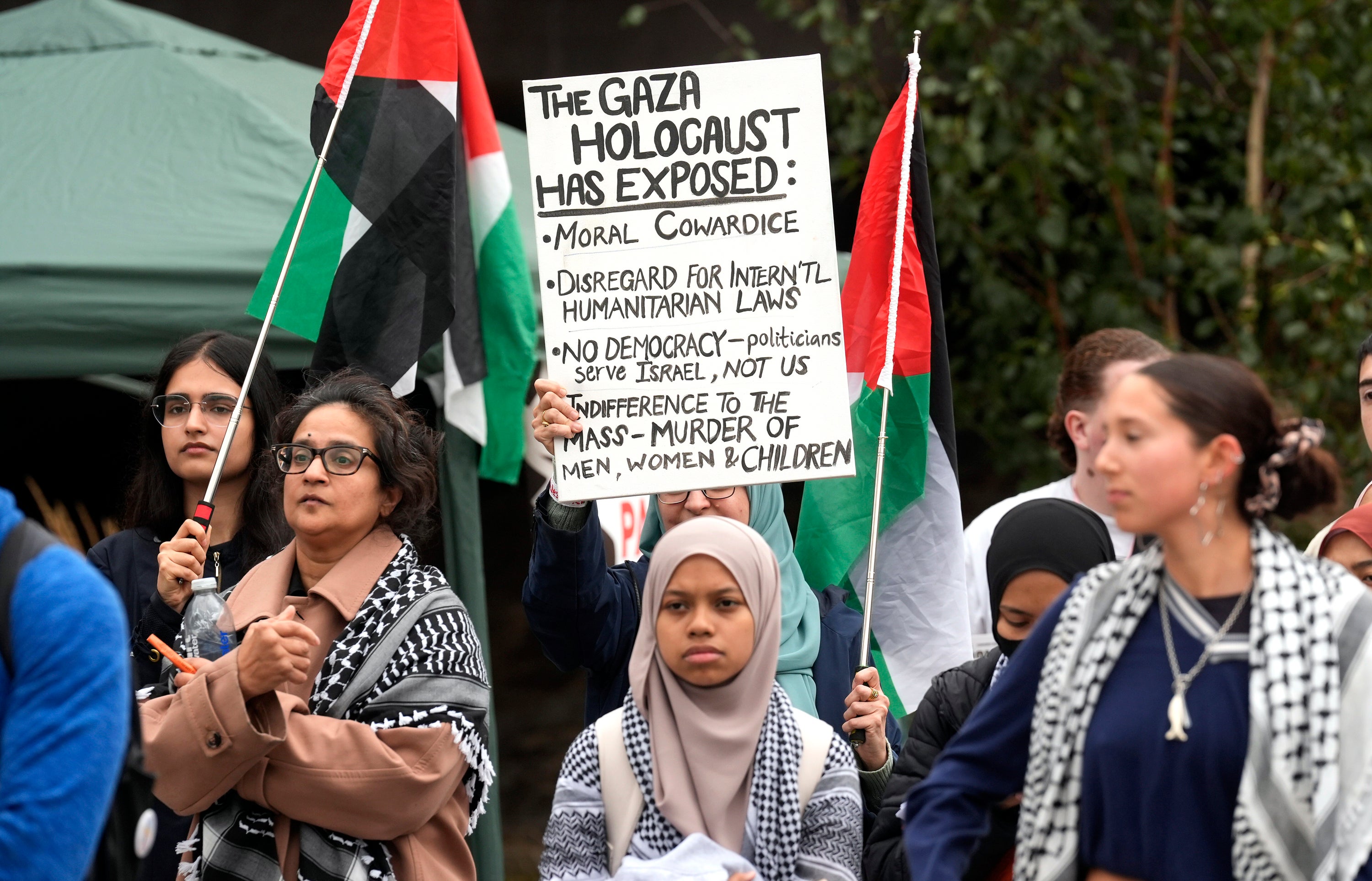 Students say they are protesting 'genocide and forced starvation'