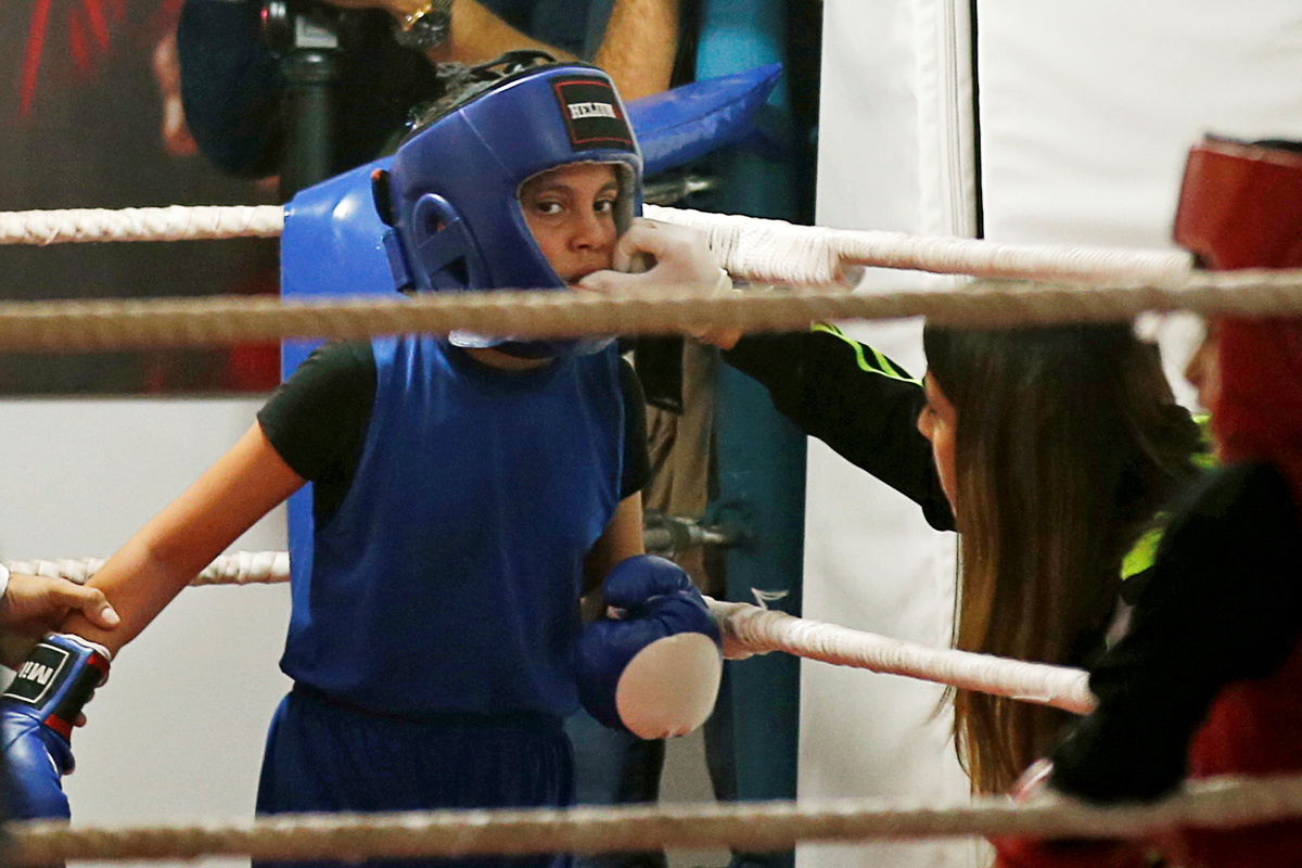 Trading jabs and punches, young Palestinian girls competed in a female boxing tournament on Friday in the Gaza Strip, where the sport is mostly popular with men.