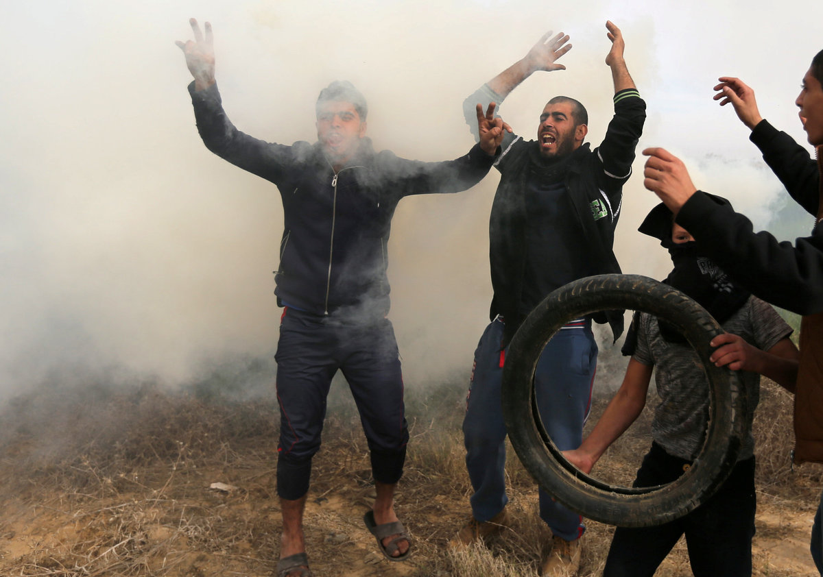 In Beirut, Lebanese security forces fired tear gas and water cannons at protesters, some of them waving Palestinian flags, near the U.S. Embassy.