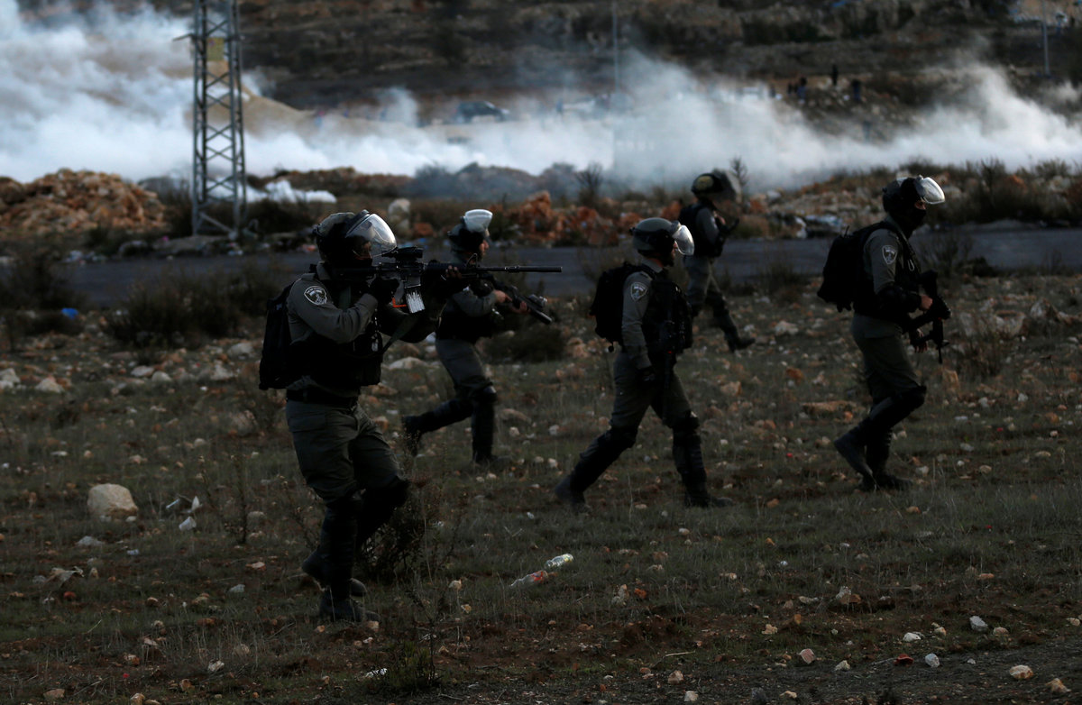 JERUSALEM (Reuters) - A Palestinian stabbed an Israeli security guard at Jerusalem's main bus station on Sunday, police said, and violence flared near the U.S. Embassy in Beirut over U.S. President Donald Trump's recognition of Jerusalem as Israel's capital.