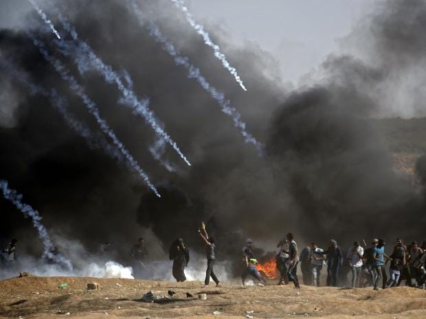 Israeli troops were ordered to use live fire on the 40,000 people who demonstrated against both the US’s embassy move to Jerusalem and the Nakba, or “catastrophe”, on 15 May – the Palestinian anniversary of Israel’s founding.