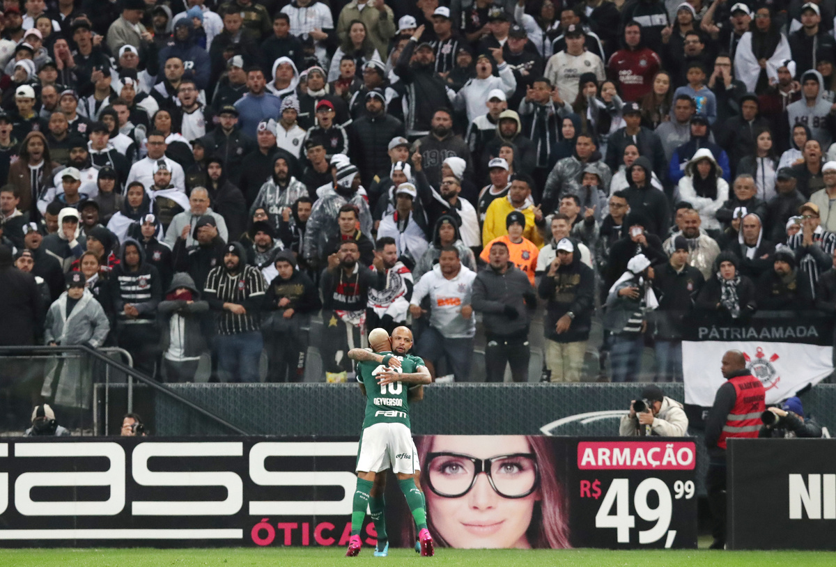 Soccer Football - Brasileiro Championship - Corinthians v Palmeiras - Arena Corinthians, Sao Paulo, Brazil - August 4, 2019 Palmeiras' Felipe Melo celebrates scoring their first goal with team mates REUTERS/Amanda PerobelliSoccer Football - Brasileiro Championship - Corinthians v Palmeiras - Arena Corinthians, Sao Paulo, Brazil - August 4, 2019 Corinthians' Manoel after the match REUTERS/Amanda PerobelliSoccer Football - Brasileiro Championship - Corinthians v Palmeiras - Arena Corinthians, Sao Paulo, Brazil - August 4, 2019 Corinthians' Junior Urso in action with Palmeiras' Dudu REUTERS/Amanda PerobelliSoccer Football - Brasileiro Championship - Corinthians v Palmeiras - Arena Corinthians, Sao Paulo, Brazil - August 4, 2019 Corinthians' Vagner Love in action with Palmeiras' Gustavo Gomez REUTERS/Amanda PerobelliSoccer Football - Brasileiro Championship - Corinthians v Palmeiras - Arena Corinthians, Sao Paulo, Brazil - August 4, 2019 Palmeiras' Luan in action REUTERS/Amanda PerobelliSoccer Football - Brasileiro Championship - Corinthians v Palmeiras - Arena Corinthians, Sao Paulo, Brazil - August 4, 2019 Corinthians fans during the match REUTERS/Amanda PerobelliSoccer Football - Brasileiro Championship - Corinthians v Palmeiras - Arena Corinthians, Sao Paulo, Brazil - August 4, 2019 Palmeiras' Felipe Melo celebrates scoring their first goal with team mates REUTERS/Amanda Perobelli