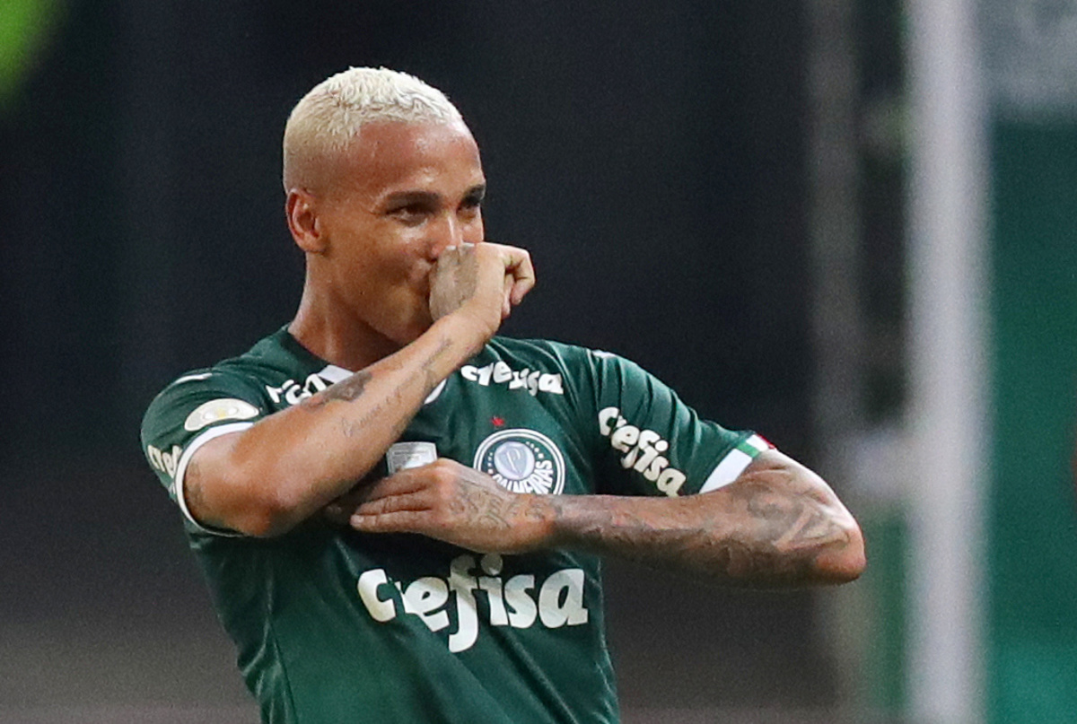 Soccer Football - Brasileiro Championship - Palmeiras v Avai - Allianz Parque, Sao Paulo, Brazil - June 13, 2019 Palmeiras’ Deyverson celebrates scoring their first goal REUTERS/Amanda Perobelli