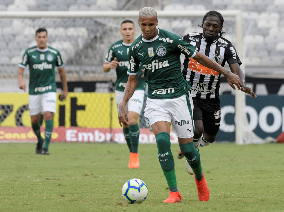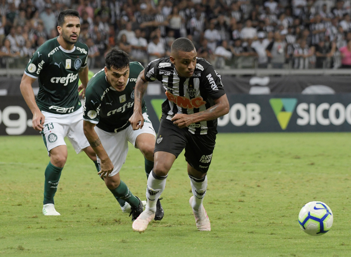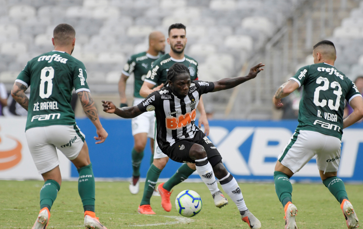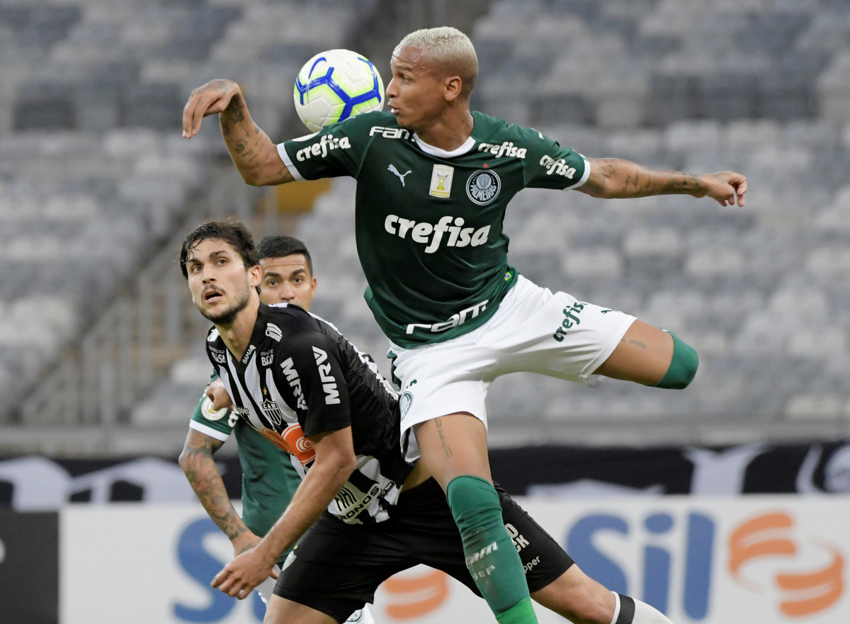 Soccer Football - Brasileiro Championship - Atletico Mineiro v Palmeiras - Raimundo Sampaio Stadium, Belo Horizonte, Brazil - May 12, 2019 Palmeiras’ Deyverson in action with Atletico Mineiro’s Igor Rabello REUTERS/Washington AlvesSoccer Football - Brasileiro Championship - Atletico Mineiro v Palmeiras - Raimundo Sampaio Stadium, Belo Horizonte, Brazil - May 12, 2019 Palmeiras’ Bruno Henrique celebrates scoring their second goal with team mates REUTERS/Washington AlvesSoccer Football - Brasileiro Championship - Atletico Mineiro v Palmeiras - Raimundo Sampaio Stadium, Belo Horizonte, Brazil - May 12, 2019 Atletico Mineiro fans during the match REUTERS/Washington AlvesSoccer Football - Brasileiro Championship - Atletico Mineiro v Palmeiras - Raimundo Sampaio Stadium, Belo Horizonte, Brazil - May 12, 2019 Palmeiras’ Deyverson in action with Atletico Mineiro’s Yimmi Chara REUTERS/Washington AlvesSoccer Football - Brasileiro Championship - Atletico Mineiro v Palmeiras - Raimundo Sampaio Stadium, Belo Horizonte, Brazil - May 12, 2019 Atletico Mineiro’s Yimmi Chara in action with Palmeiras’ Raphael Veiga and Ze Rafael REUTERS/Washington Alves