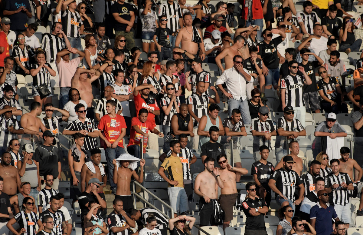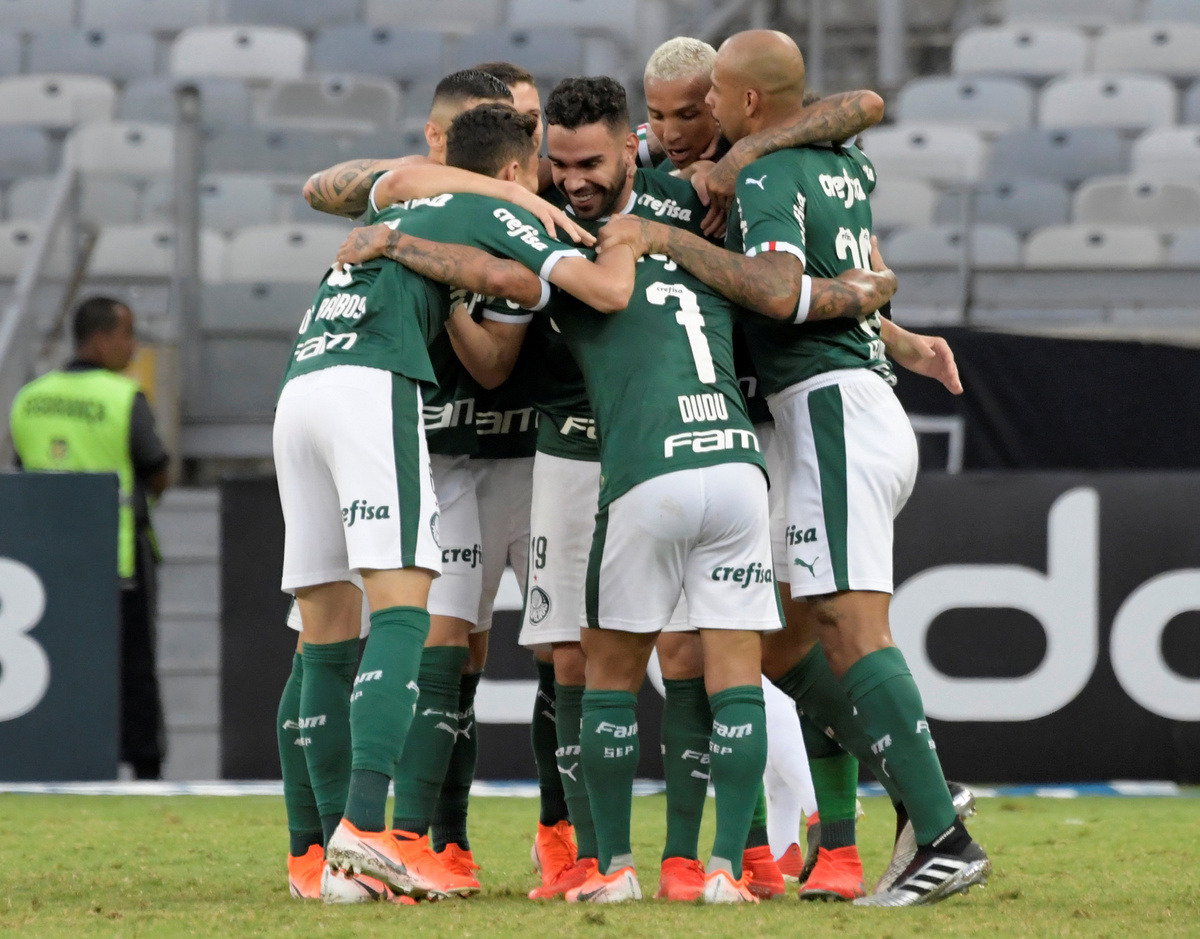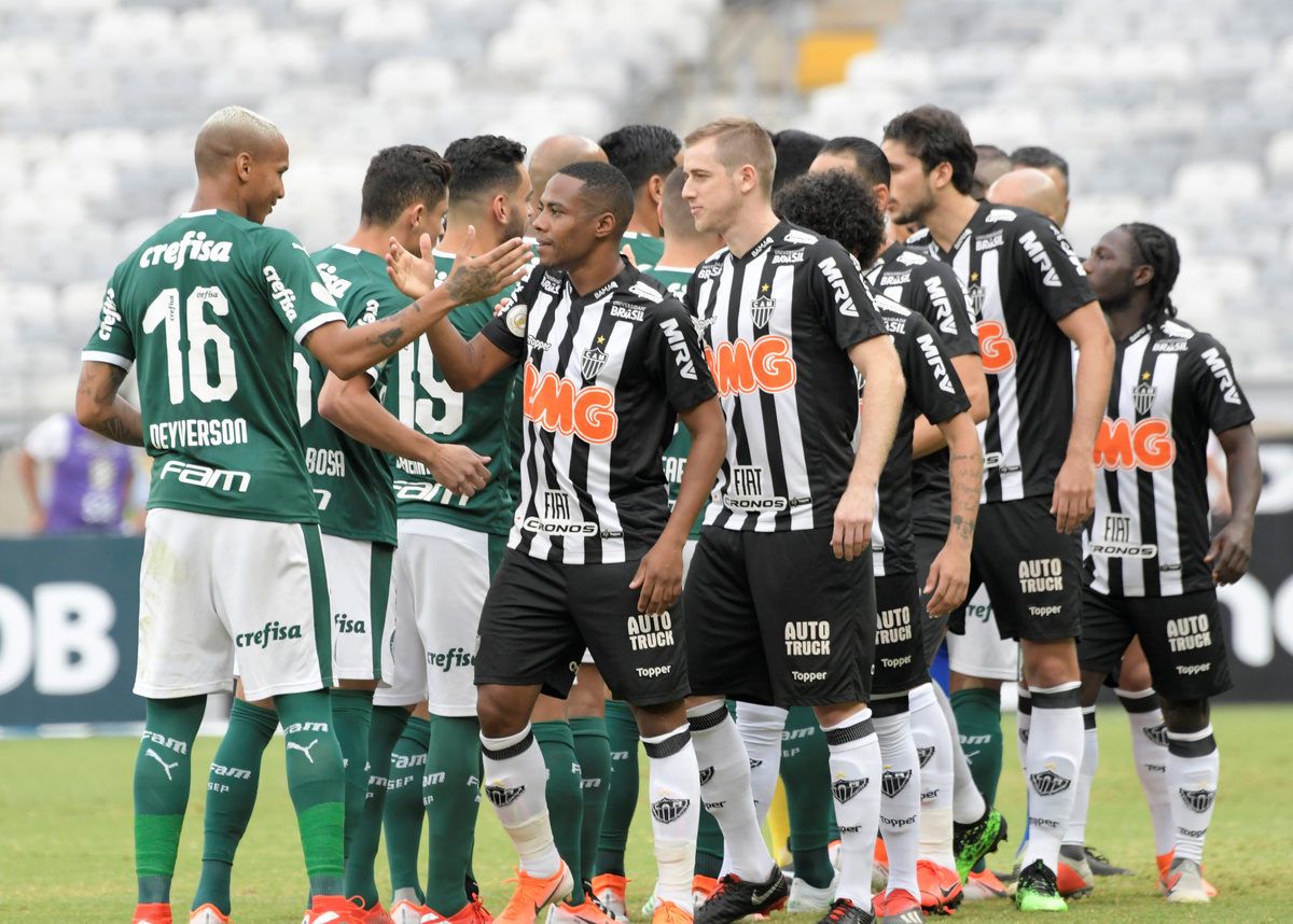 Soccer Football - Brasileiro Championship - Atletico Mineiro v Palmeiras - Raimundo Sampaio Stadium, Belo Horizonte, Brazil - May 12, 2019 Palmeiras’ Deyverson in action with Atletico Mineiro’s Igor Rabello REUTERS/Washington AlvesSoccer Football - Brasileiro Championship - Atletico Mineiro v Palmeiras - Raimundo Sampaio Stadium, Belo Horizonte, Brazil - May 12, 2019 Palmeiras’ Bruno Henrique celebrates scoring their second goal with team mates REUTERS/Washington AlvesSoccer Football - Brasileiro Championship - Atletico Mineiro v Palmeiras - Raimundo Sampaio Stadium, Belo Horizonte, Brazil - May 12, 2019 Atletico Mineiro fans during the match REUTERS/Washington AlvesSoccer Football - Brasileiro Championship - Atletico Mineiro v Palmeiras - Raimundo Sampaio Stadium, Belo Horizonte, Brazil - May 12, 2019 Palmeiras’ Deyverson in action with Atletico Mineiro’s Yimmi Chara REUTERS/Washington AlvesSoccer Football - Brasileiro Championship - Atletico Mineiro v Palmeiras - Raimundo Sampaio Stadium, Belo Horizonte, Brazil - May 12, 2019 Atletico Mineiro’s Yimmi Chara in action with Palmeiras’ Raphael Veiga and Ze Rafael REUTERS/Washington Alves