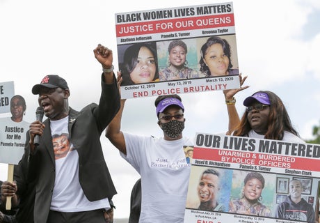 The group of dozens at the rally included family members of other Black people whose names have become rallying cries in the movement against racial injustice in policing, including Floyd, Breonna Taylor and Jacob Blake. They joined the Turner family in demanding the officer accused of killing her be held accountable.