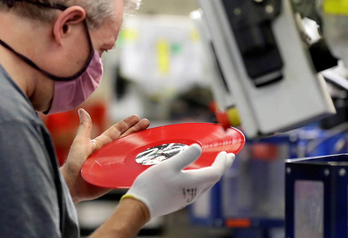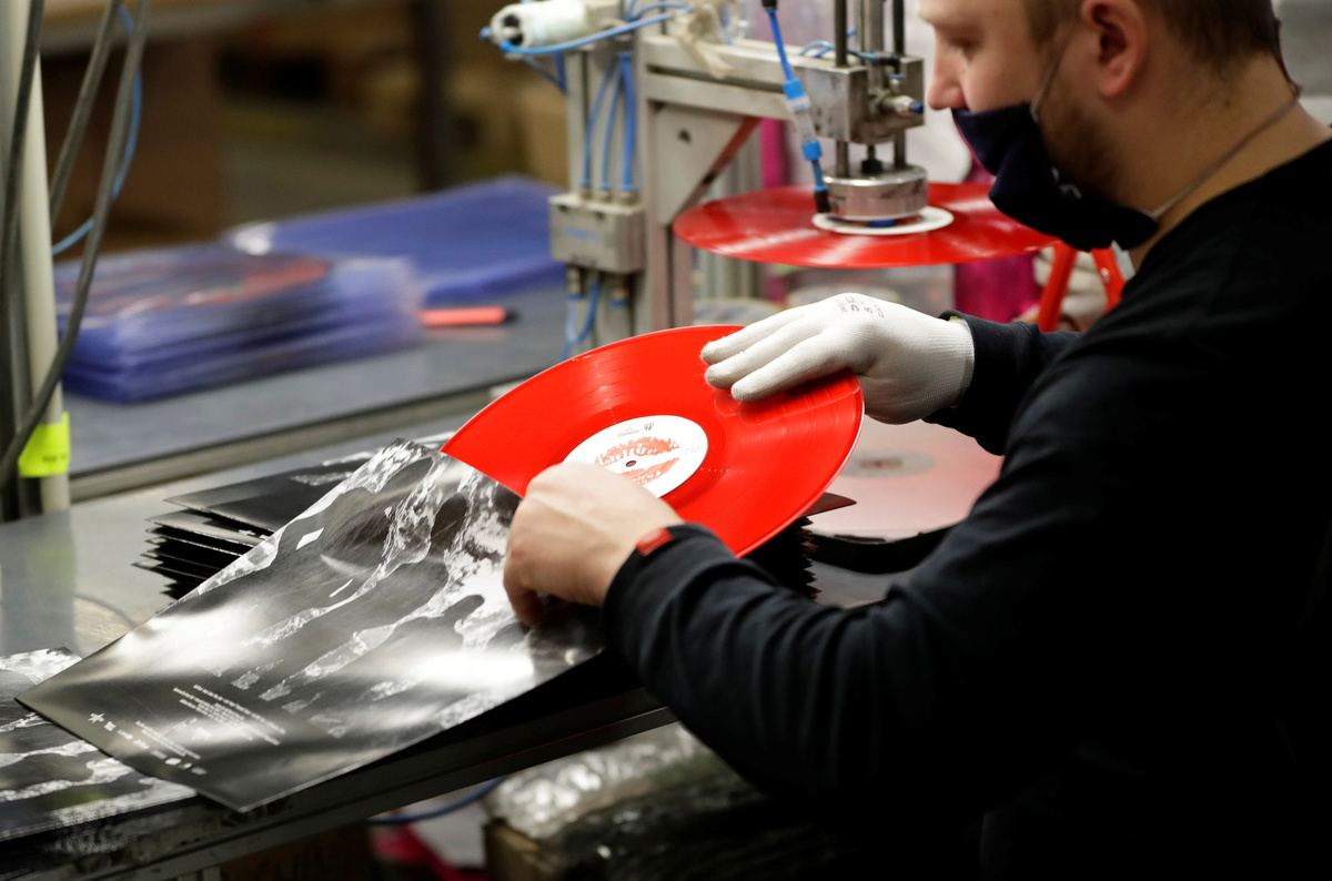 "A lot of people started to buy their own audio systems and started to buy vinyl records...probably because they stayed home and there were not as many other options such as concerts, pubs and bars," said Sterba as white-gloved workers transferred freshly-stamped LPs into a box to cool before packaging.