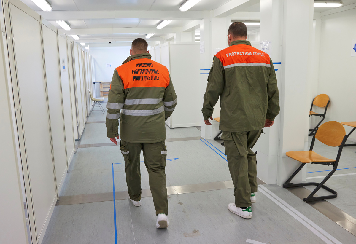 Sent by the government to support the hard-pressed Swiss healthcare system, members of the civil defense corps are on the frontline of the battle against COVID-19, helping out in emergency rooms and handling bodies.