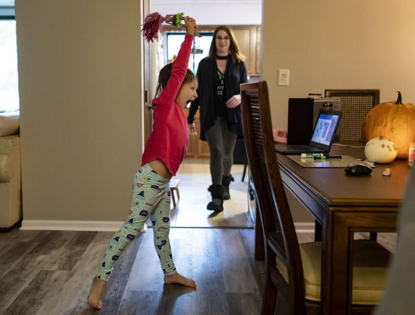 Erin Killingsworth-Walker, mom of 5-year-old Taylor, said flexible scheduling and being able to work from her Olympia Fields home, along with help from her mother, has been key in allowing her to keep her human resources job at Relativity, a Chicago-based software company.