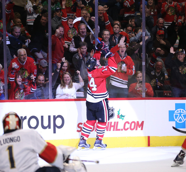 Panik scored for the Hawks in regulation while Corey Crawford earned the victory in goal. Jaromir Jagr had a goal for the Panthers but Roberto Luongo suffered the loss in goal.