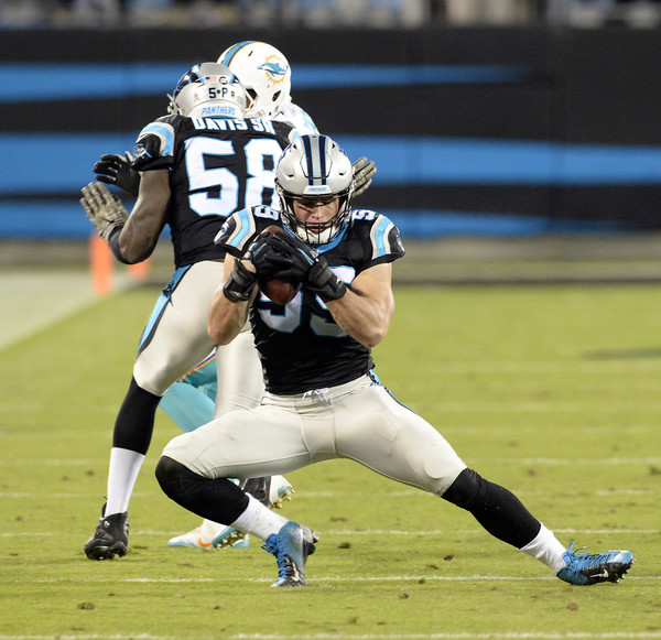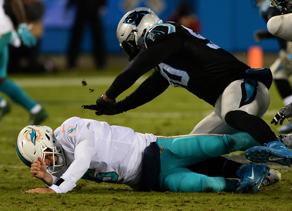 The Dolphins' big blunder in the first half was Cutler's interception with 47 seconds left. Linebacker Luke Kuechly stepped in front of a pass intended for tight end Julius Thomas and set up the Panthers at the Miami 20-yard line.