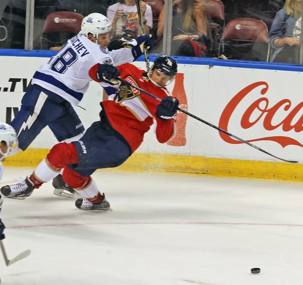 Colton Sceviour tied the game at three apiece in the third period on an assist from Michael Haley, and Vincent Trocheck extended Florida's lead after McCann's tally. Trocheck wrapped a rebound around Vasilevskiy after Radim Vrbata fired a shot on net.