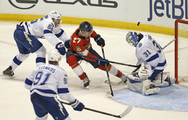 In all, the Panthers (1-1-0) peppered Vasilevskiy with 48 shots on goal, including 23 in the first period alone. In the first period, the Panthers attempted 33 shots. The Lightning had 10. At one point in the second period, Florida had four times as many shots on goal as Tampa Bay and, through two periods, the Panthers attempted a whopping 62 shots.