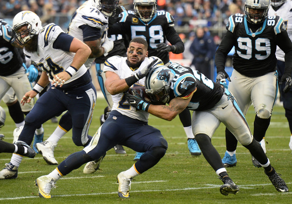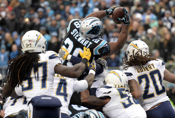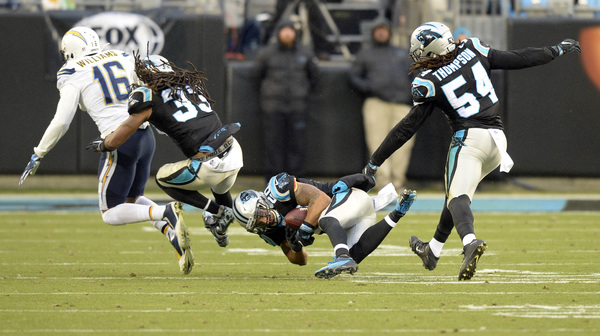 The Chargers couldn't get any closer, with the Panthers clinching the game on an interception by Kurt Coleman.