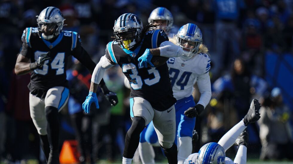 CHARLOTTE, N.C. — D’Onta Foreman ran for a career-high 165 yards and a touchdown, Chuba Hubbard added 125 yards rushing and the Carolina Panthers racked up a franchise record 320 yards on the ground to beat the Detroit Lions 37-23 on Saturday and keep their NFC South title hopes alive.
